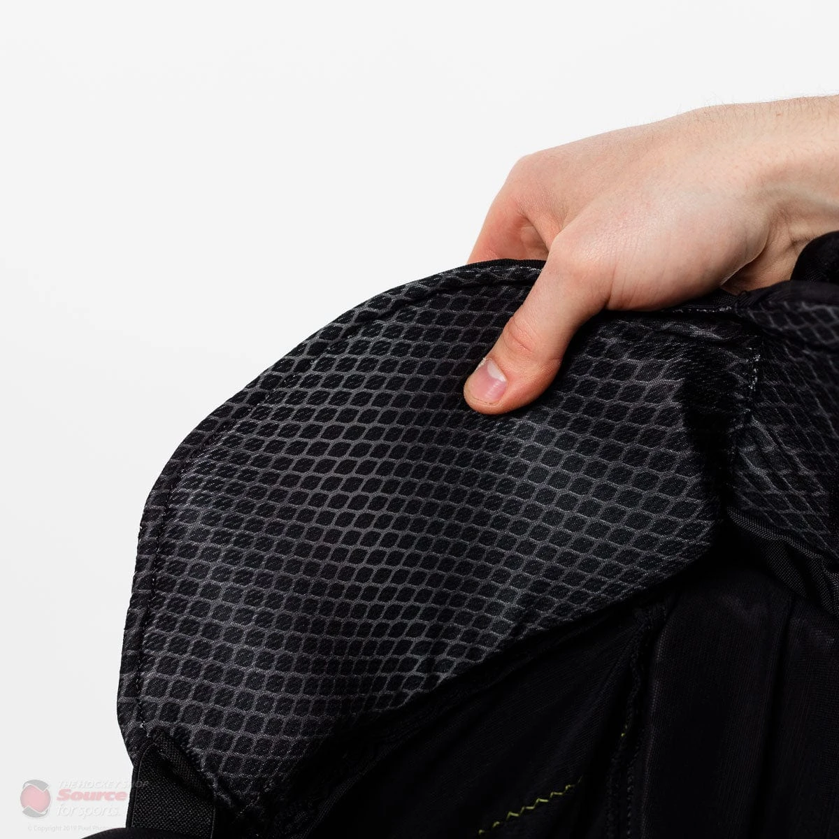 The spine protector features a molded PE foam and a CCM shield to protect against any impacts, slashes and crosschecks. The kidney guards also feature a removable and molded plastic insert with foam backings for comfort.