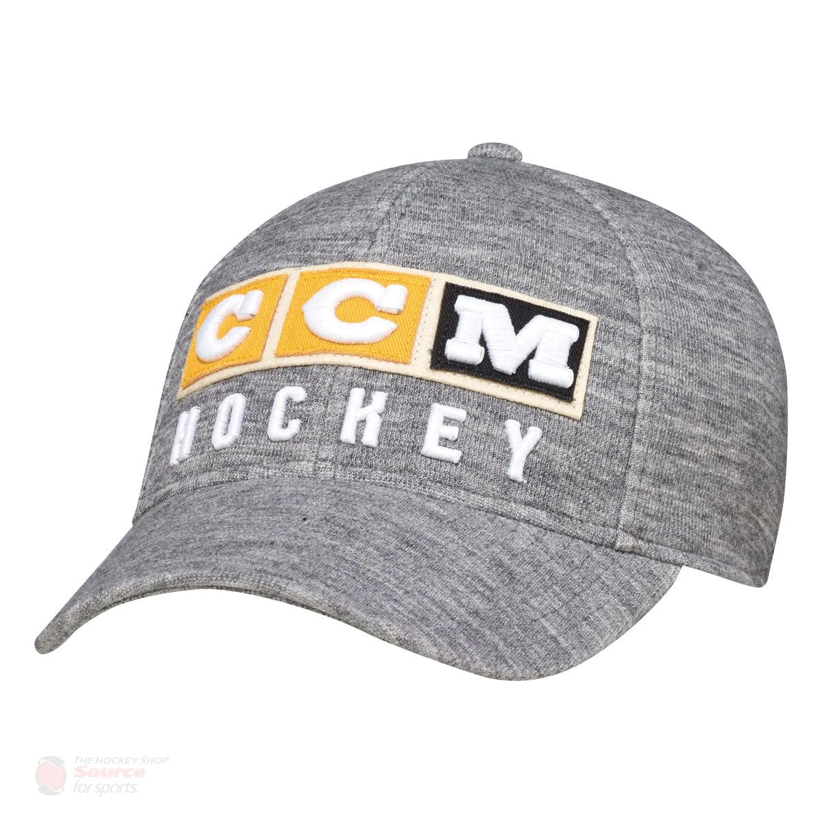 Raised brush cotton embroidered center CCM front logo with twill applique.