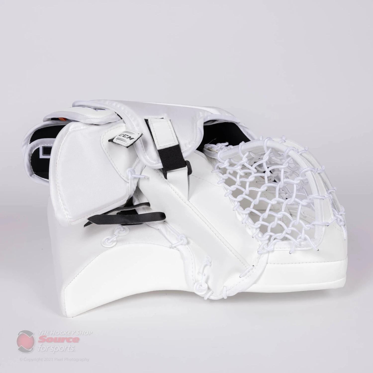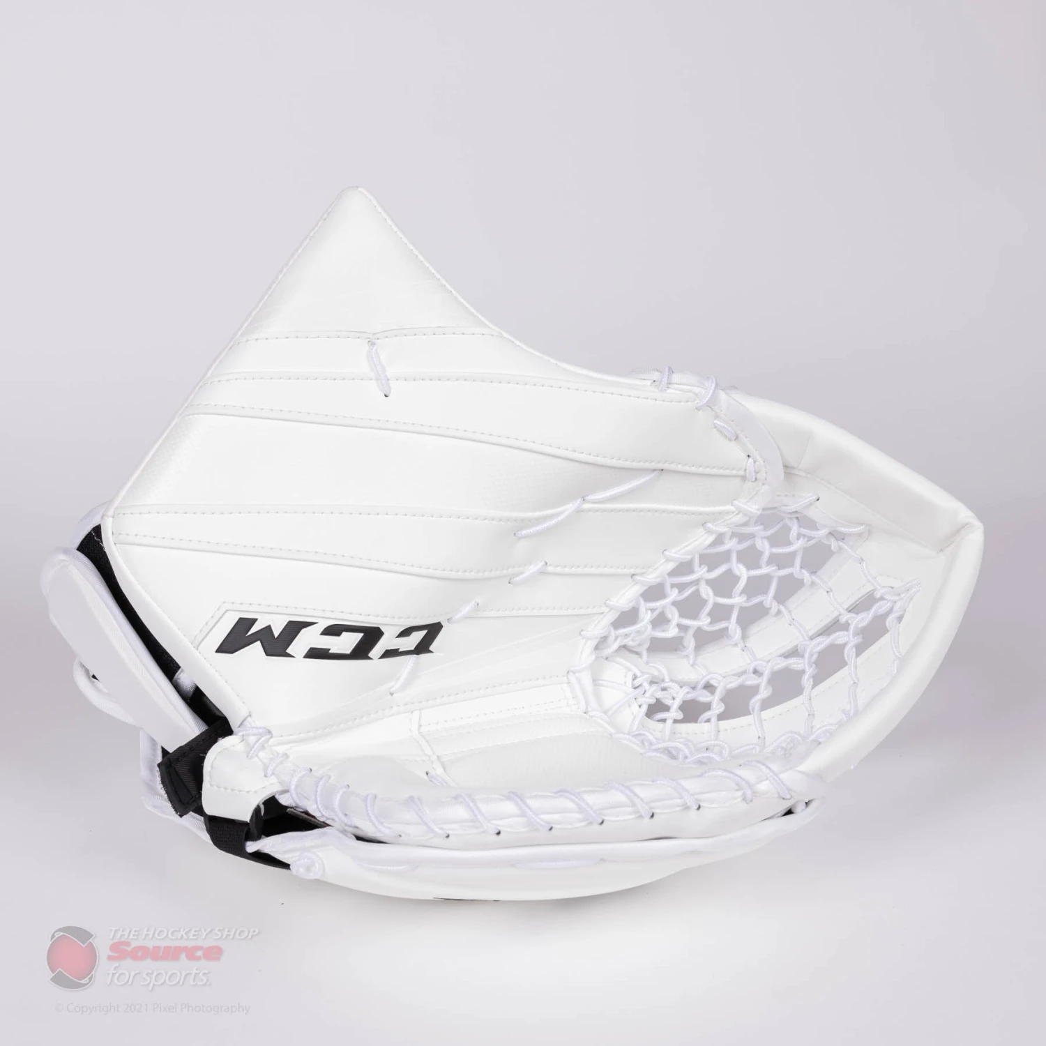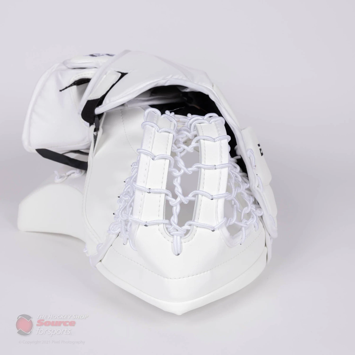The back hand of the CCM EFlex 5 Trapper features velcro adjustments for the fingers, as well as the back of the hand. Goalies can also customize their fit by the quick release webbing strap on the wrist, which allows for easy and secure adjustment.