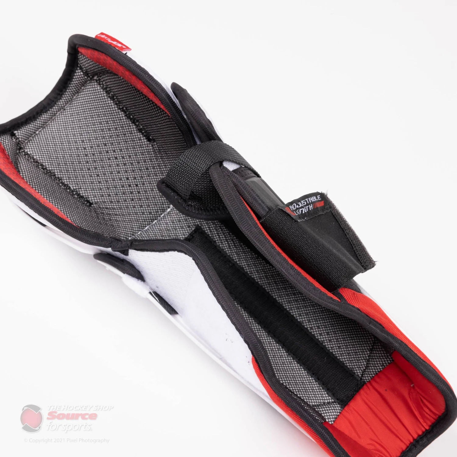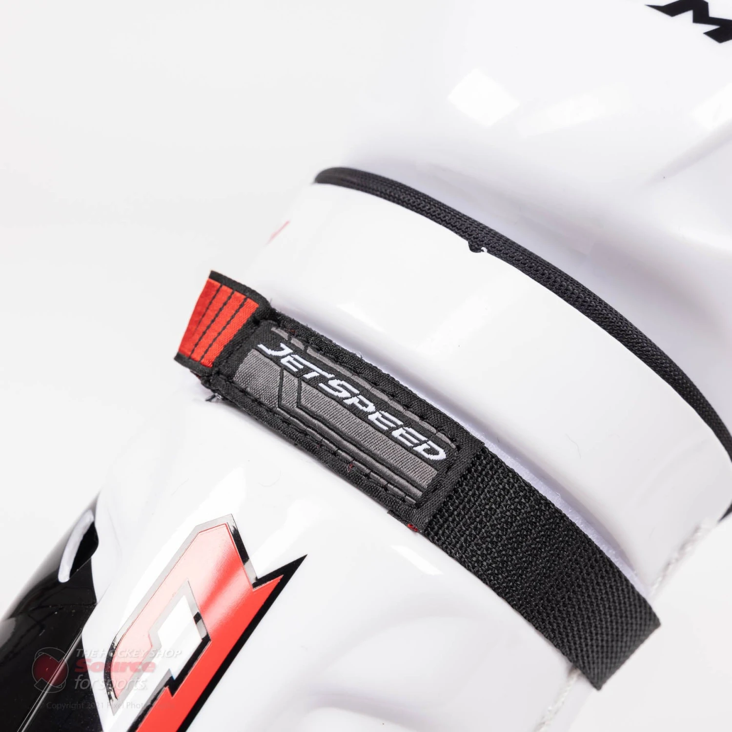 The CCM Jetspeed FT4 Pro JR Hockey Shin Guard was engineered to feature protection for elite level youth players, while having a narrow anatomical design to keep the guard lightweight and mobile to focus on freedom of movement. The new profile of the FT4 Pro shin and knee caps strike a perfect balance of coverage without being too wide. Despite being really comfortable, it has a very locked in fit that eliminates slippage when strapped in.