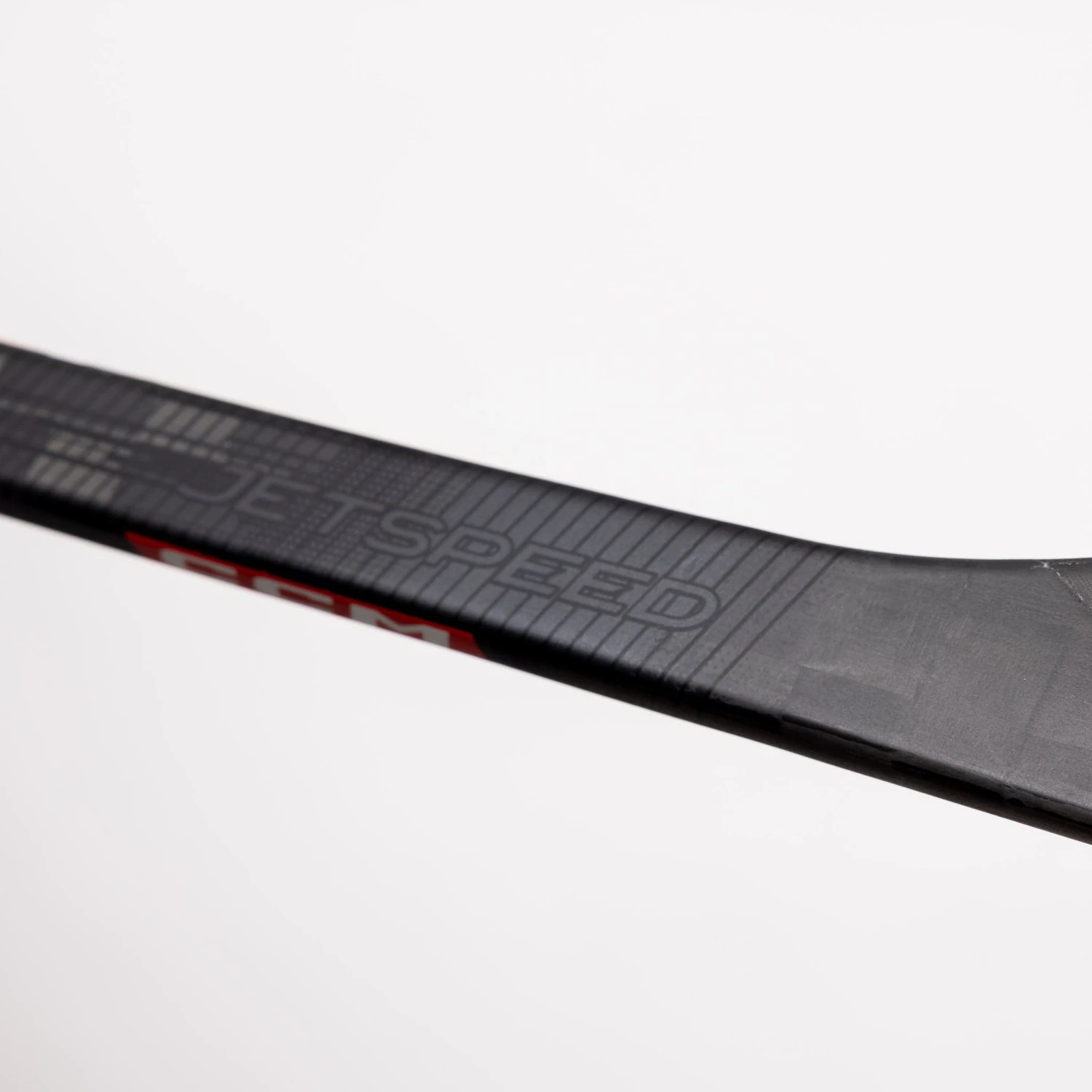 The Jetspeed line uses a hybrid kick point, which combines the benefits of both a low and high kick point. It is designed to provide a quick release for wrist and snap shots, while also delivering more power for slap shots. The hybrid kick point is achieved by using a combination of carbon fibres with different flex properties in the lower and upper parts of the shaft. The lower part of the shaft uses stiffer carbon fibres, creating a low kick point for quick releases. The upper part of the shaft uses more flexible carbon fibres, creating a higher kick point for increased power and accuracy on slap shots.