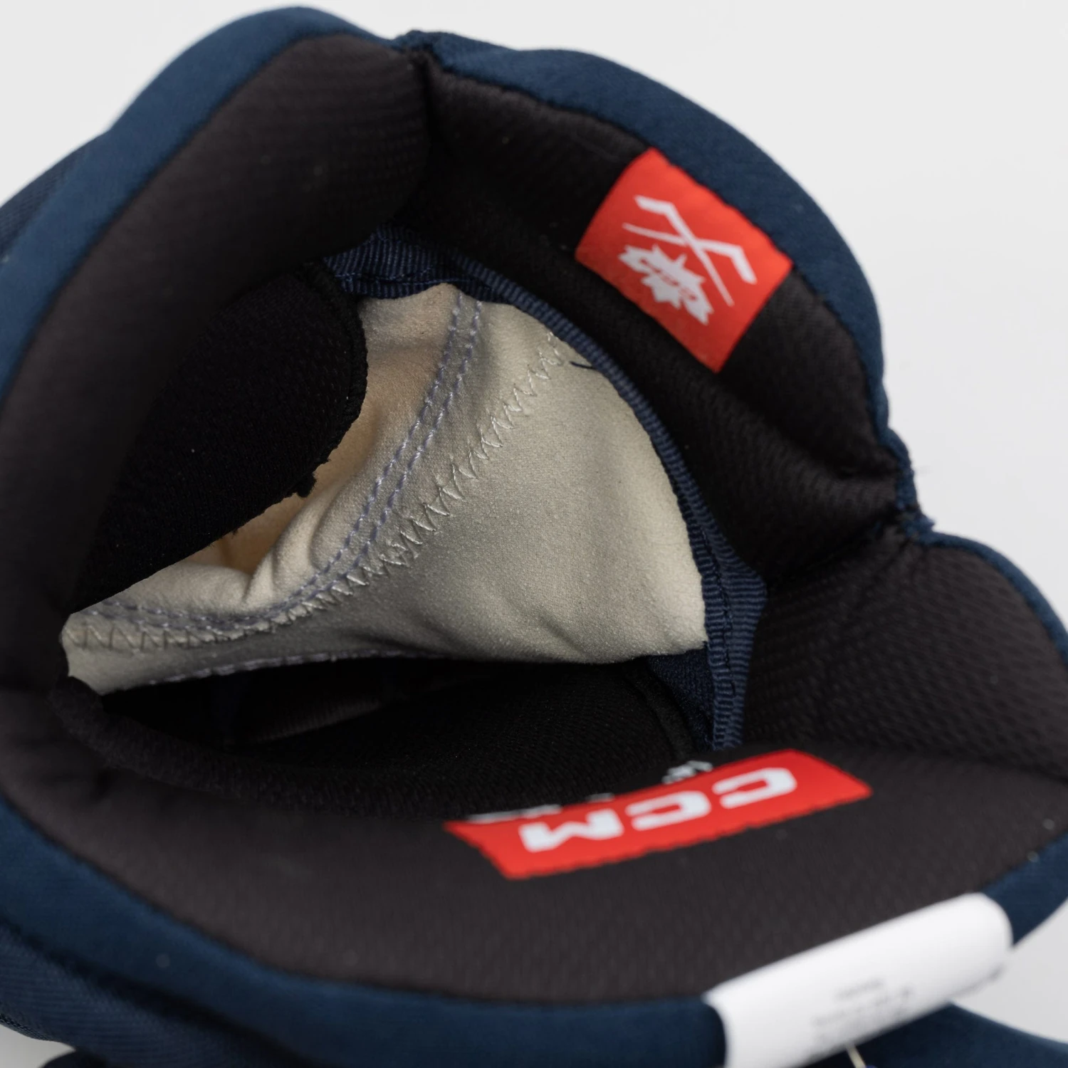 The FT680 hockey gloves reintroduce the Pro Flexthumb, a feature that has been a staple in CCM gloves for years. This feature includes a two-piece design that allows the player’s thumb to move more freely and naturally, making it easier to grip the hockey stick and control the puck. This features is only available in sizes 11”-15”.