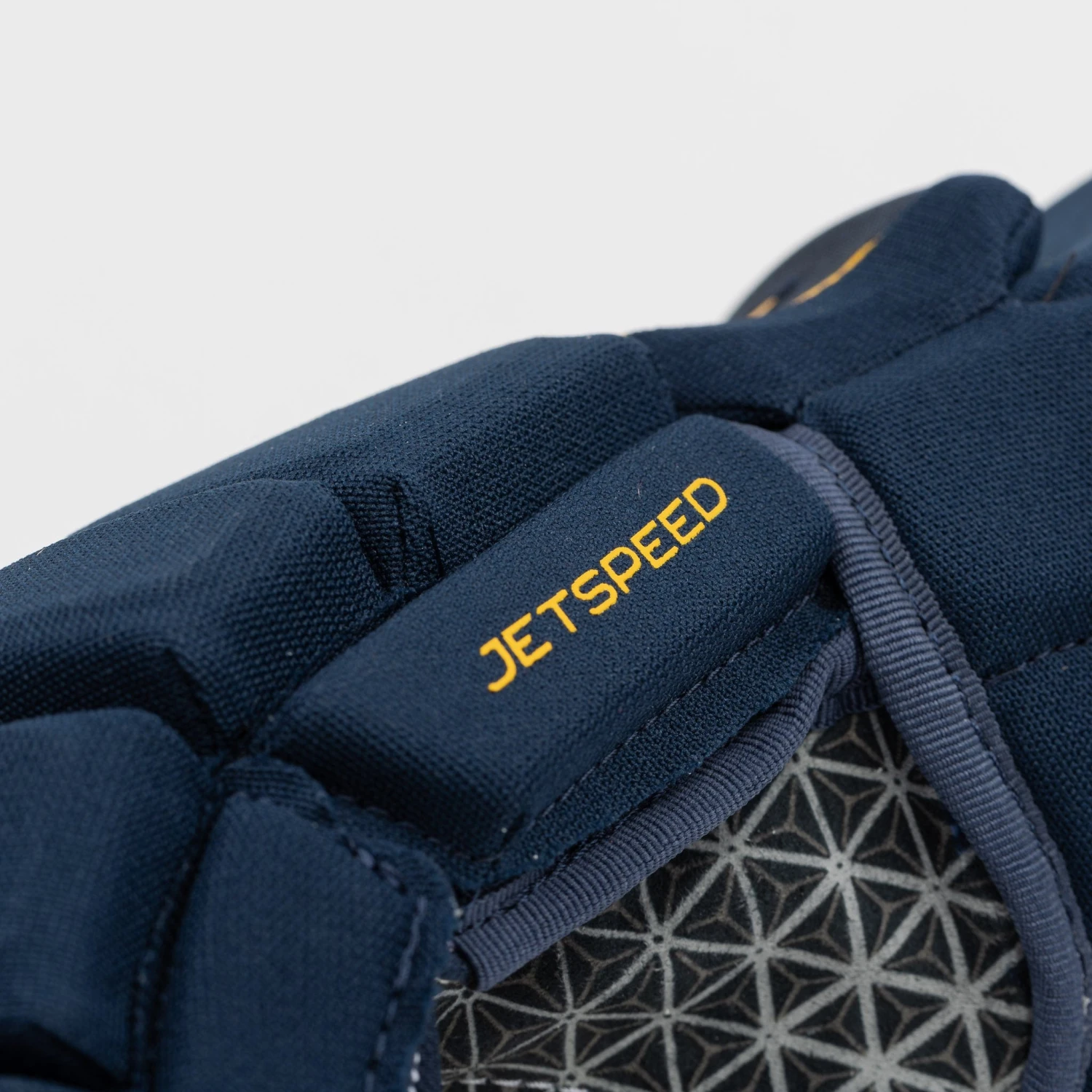 The Sensalast Palm is new to the Jetspeed line and enhances the interaction between your hand and the stick, and the sublimated reinforcement not only adds to the durability of the gloves, but also ensures that you get a firm and confident grip on your stick, allowing you to take your game to the next level.