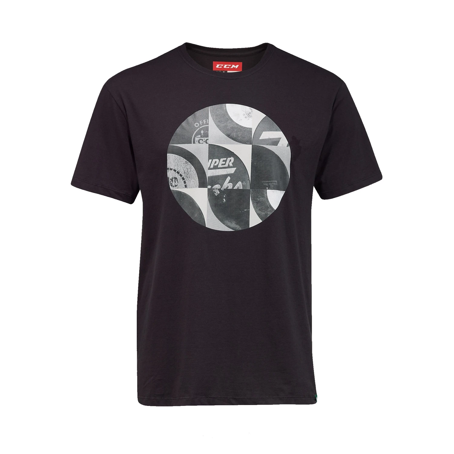 This super-soft, relaxed short sleeve tee features a printed image of vintage pucks. The perfect tee to bring those nostalgia hockey vibes.