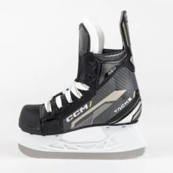The CCM Super Tacks 9370 YTH Goalie Skates are designed with the recreational level goalie in mind. CCM features an injected technology design with a synthetic composite boot construction, giving goalies a durable boot with good structural stiffness. An asymmetrical collar allows goalies to get deep in their stance while a thermoformable core allows goalies to get a better fit than before. A brushed microfiber liner provides a comfortable fit, and a felt tongue that protects against lace bite and providing comfort. CCM fit system insoles give goalies good support and comfort while locking your feet into the skates. Finally, the XSG1 stainless steel runner gives the blades excellent edge life while standing taller than previous generation CCM steel.