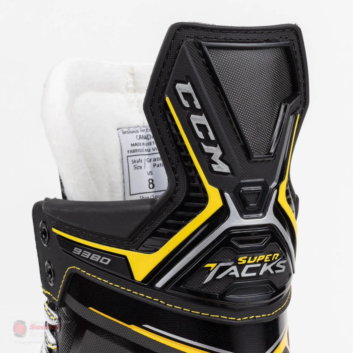 The CCM Super Tacks 9380 SR Hockey Skates has an ergonomic boot design, interchangeable tongues, lightweight footbed, and Speedblade XS holders make this perfectly fitting skate perform at elite levels on the ice at incredible speeds.
