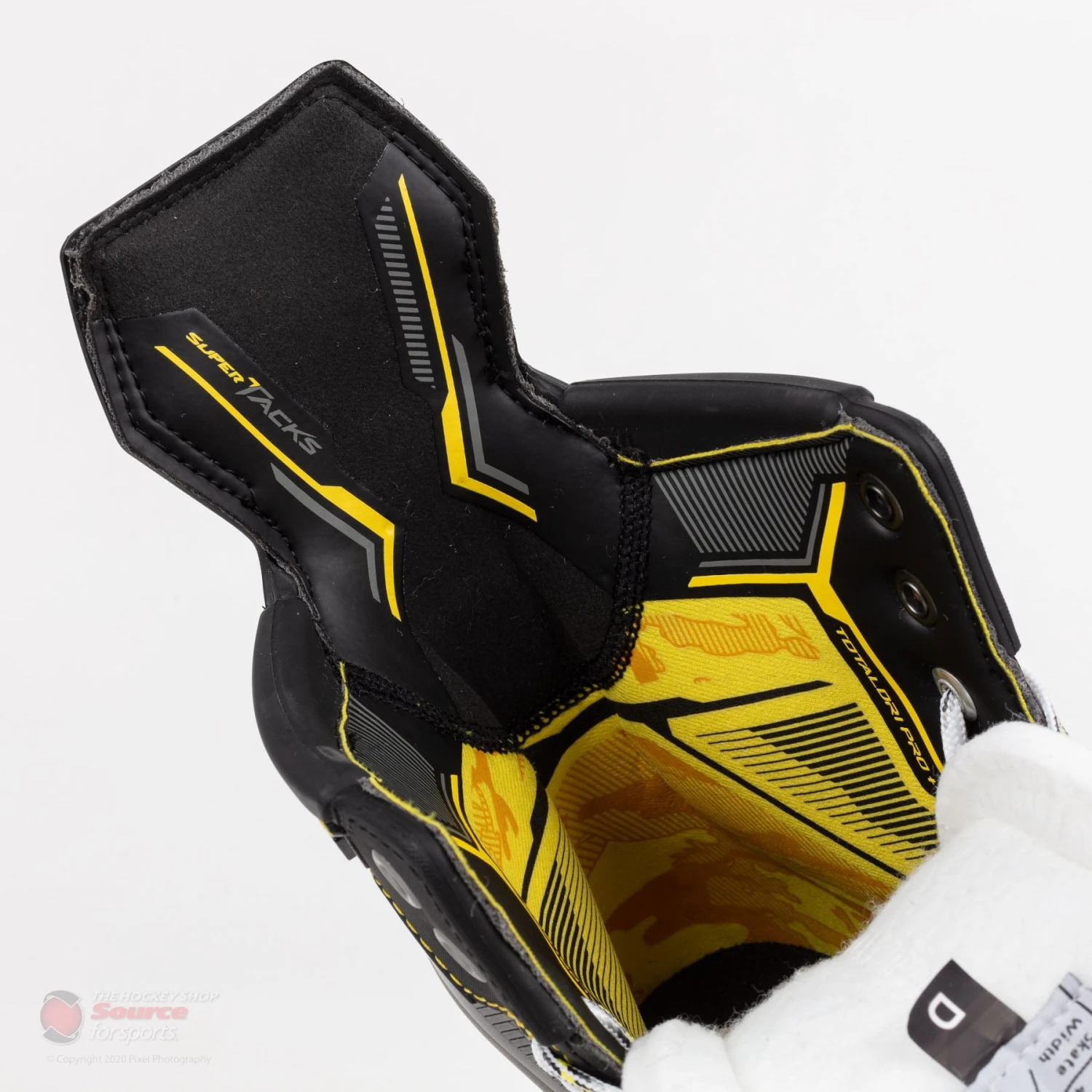 The CCM Super Tacks Vector Premier SR Hockey Skates has been specifically designed for Source for Sports and provides an elite level skate at tremendous value. This skate shares many features found on the top line Super Tacks AS3 Pro including the TotalDri Pro+ liner, the replaceable asymmetrical TriTech tongue, and the XS holder with the Speedblade XS1 Black steel.