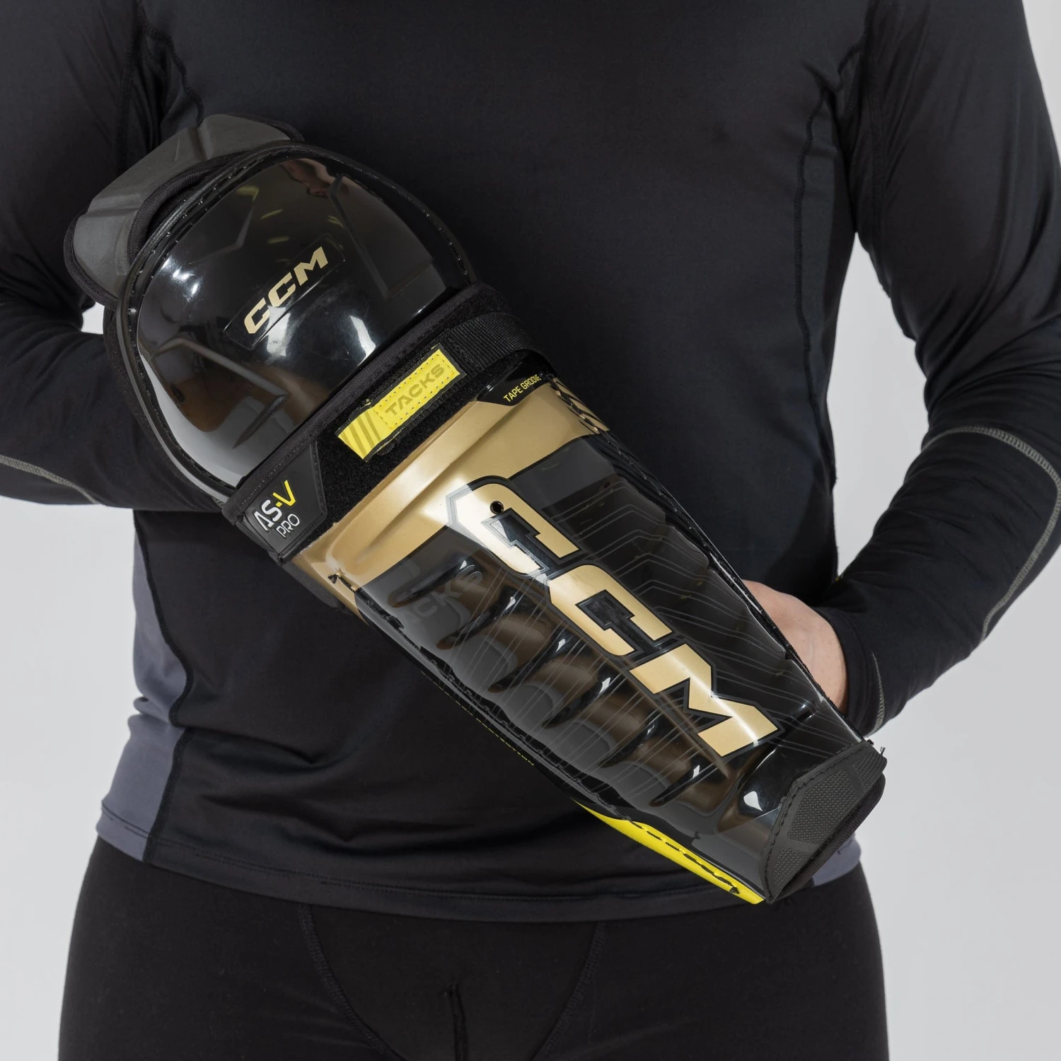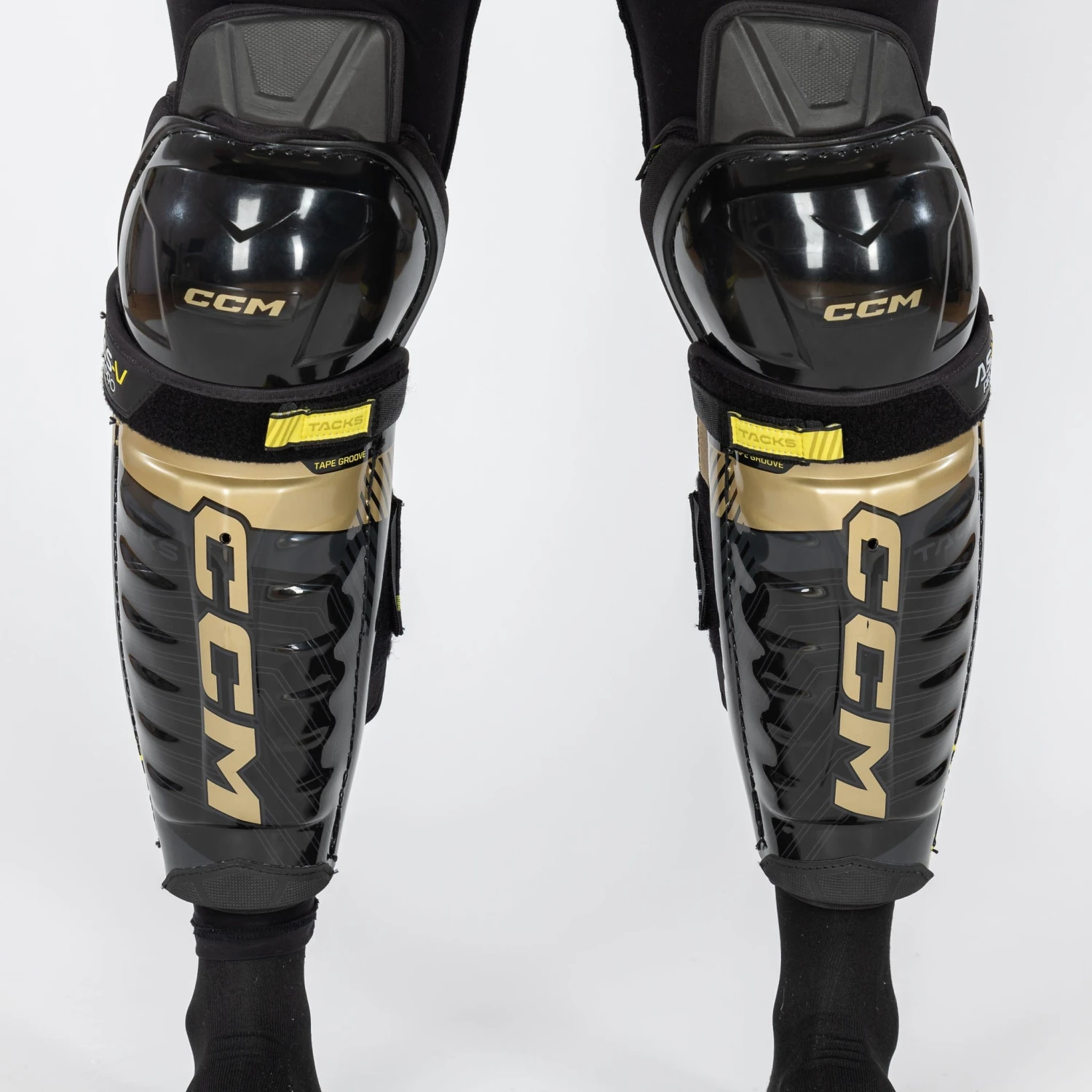 CCM returns in 2022 with some ambitious changes and upgrades to their Tacks line of protectives. The AS-V Pro shin guards are equipped with a new Anatomical Shield Design, D3O foam, ADPTFit strappings, and a JDP kneecap design. CCM took a different approach with their shin guard design at their highest price point, aiming to accommodate most players’ equipment preferences while also keeping them fully protected.