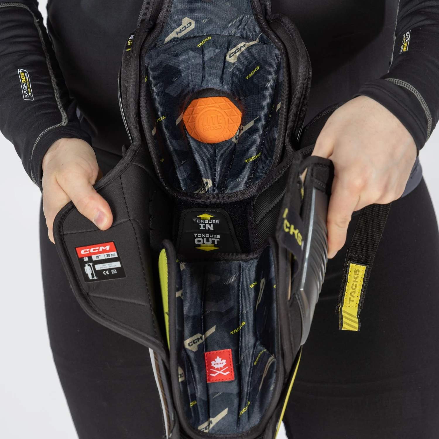 One of the biggest upgrades made in CCM’s top-of-the-line Tacks shin guards is in the functionality of the liner. Shin guards traditionally allow you to take out and adjust the liner on the inside, but doing so could lower both the protection and comfort of the pads. On the AS-V Pro, the liner is built into the pad and can be adjusted to protect you wherever your knee is situated, and whether you like to tuck your skate tongues in or let them flop out.