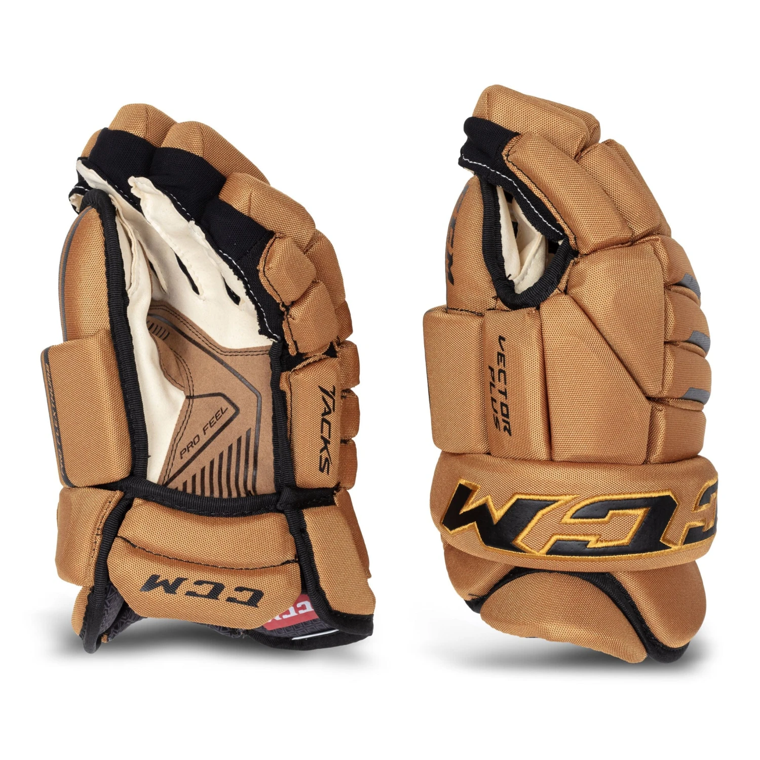 CCM Vector Plus Gloves are fitted with a two-piece pro flex thumb, also seen on the 4R Pro2 Glove. The two-piece thumb allows for better movement and grip on your stick.